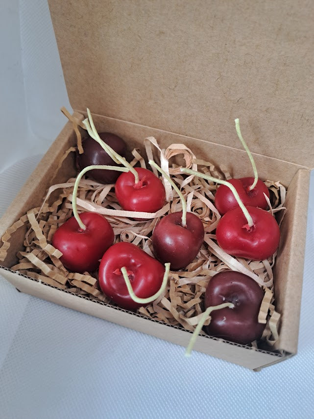 Pack contain 7 Cherries in various colour tones. These candles are made in very small batches so colours will vary slightly from photos.